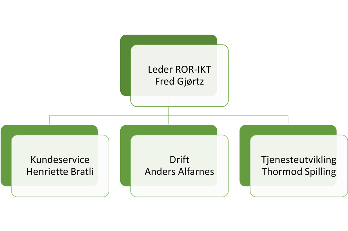 OrganisasjonskartHer finner du oversikt over ROR-IKTs organisering. ROR-IKT består av tre avdelinger; kundeservice, drift og tjenesteutvikling. Avdelingslederne rapporterer til leder i ROR-IKT. Sist endret 14.06.2025 15.33